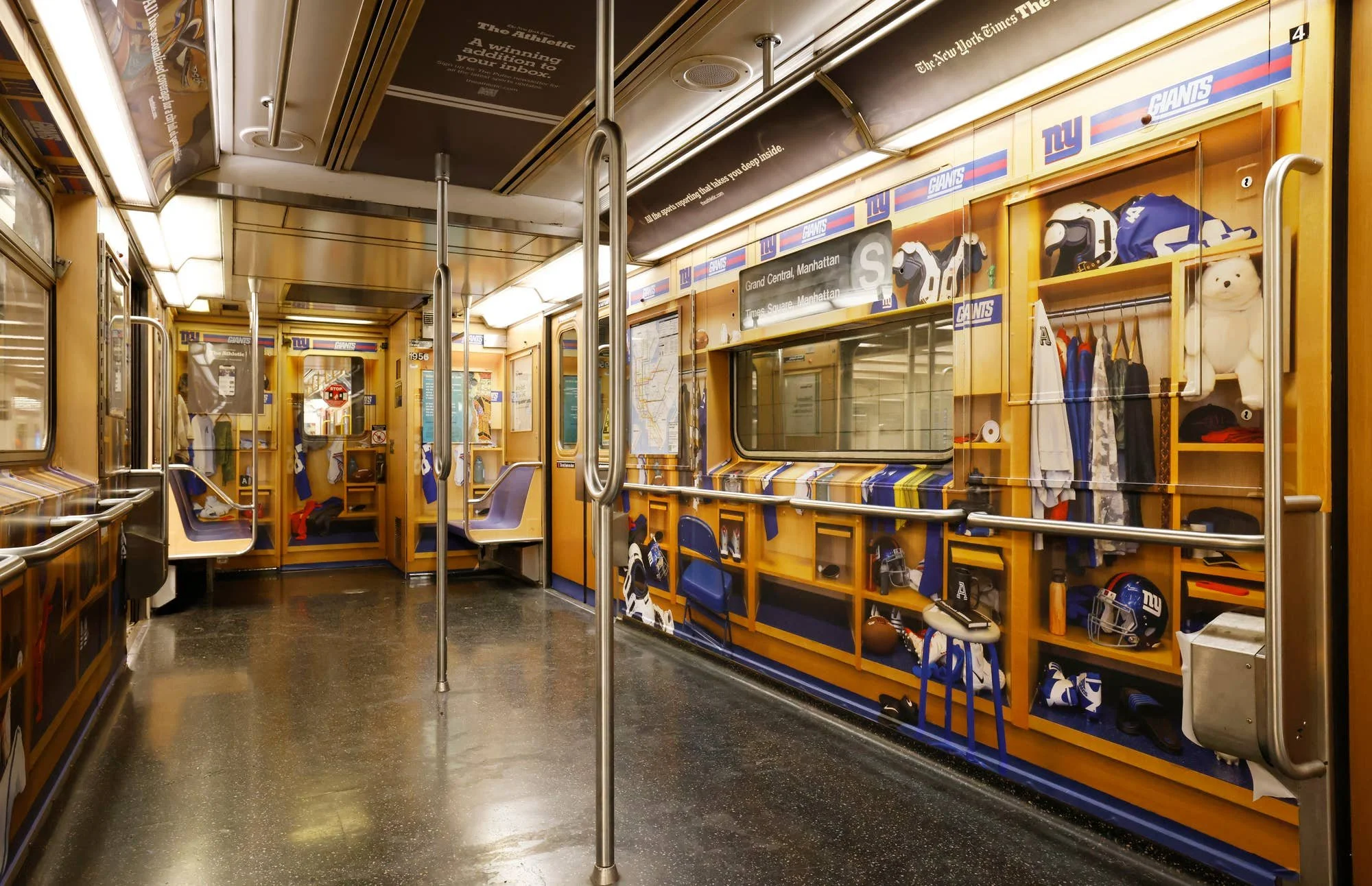 The S shuttle subway train that runs between Times Square and Grand Central station in New York City was transformed for one month in 2023 to reflect the breadth of The New York Times with each car representing an individual product in a Times subscription.